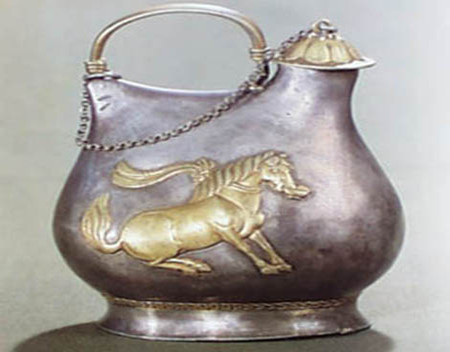 Silver Pot with Cup-in Mouth Dancing Horse Design2012-12-24 14:26:00 From: http://cultural-china.com