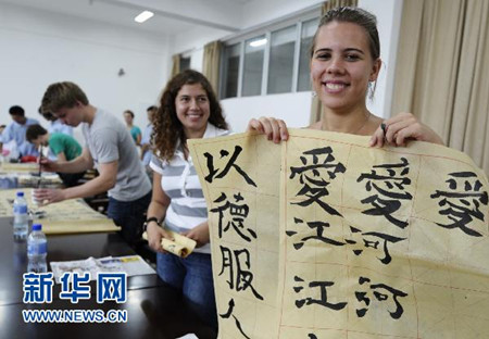 The "Chinese Bridge Summer Camp for German Students" kicked off on Thursday in Hefei, east China's Anhui province. 54 students from seven Confucius institutes in Germany arrived in Hefei, Shouxian and Tunxi for a seven-day Hui Culture exploring visit. Culture classes for students to glimpse Chinese traditional arts, such as calligraphy and papercutting, as well as mandarin classes are provided to them. Besides, they will live with the local students to experience Chinese family upbringing.