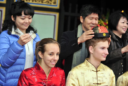 Exchange students participate coming-of-age ceremony in Taipei Confucius Temple2012-12-11 9:21:00 From: http://news.xinhuanet.com/english/photo/2012-12/09/c_132029634.htm